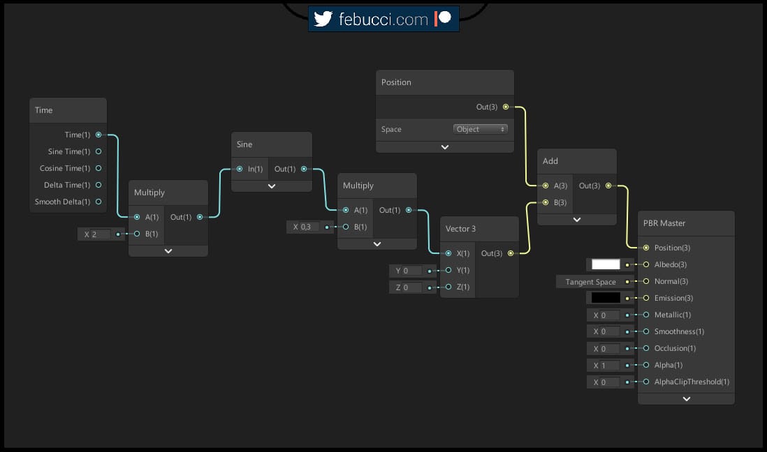 That's the first shader (object moved horizontally) written in this tutorial, converted in Shader Graph: