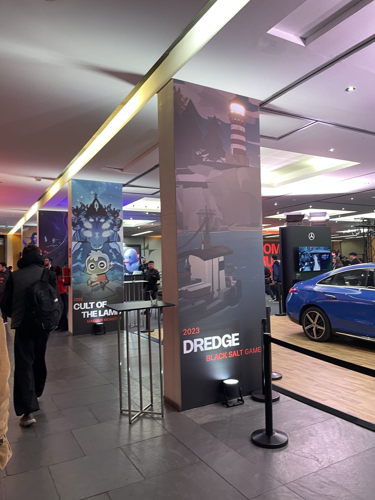 And of course there were many booths from different companies and sponsors (e.g. Stripe, Discord and more), including a Mercedes car using Unity behind their screens and a huge Cult of the Lamb head (I wonder how they build and dismantle that, and if it's the same head I keep seeing at different events, traveling the world, or if multiple ones exist in our timeline).